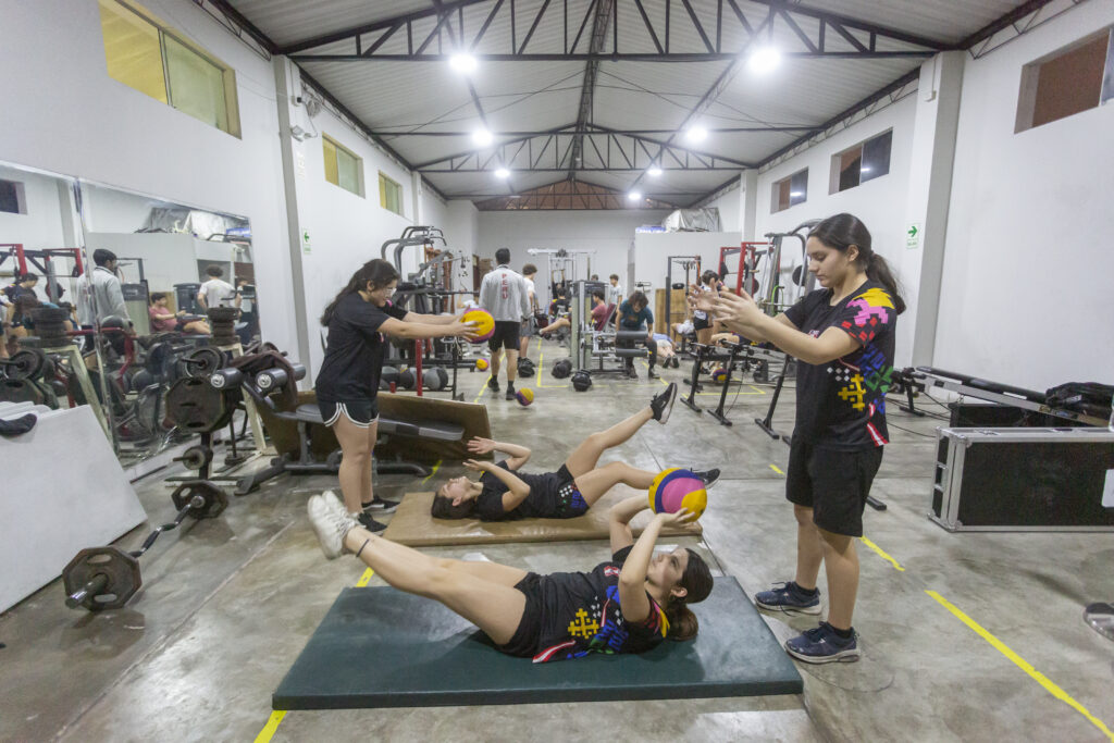 Al terminar, grabamos un video corto, frente a la piscina donde ya entraba el equipo que capitanea. Su concentración estaba ahí. Volteaba a cada instante, viendo cómo sus compañeras ya habían entrado en ritmo. Era un pez fuera del agua. Nos apuramos. Si hay algo que un ser humano no puede cambiar es de pasión. “Hasta ahora yo misma me sigo sorprendiendo de todo lo que he mejorado”, cuenta a En Las Canchas Kiara, 15 años, aún escolar. “Al empezar [en la selección] no tenía idea que iba a ser esta Kiara del futuro. Creo que vieron mi actitud”, dice la capitana de la selección.